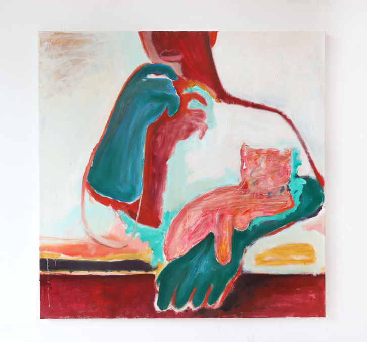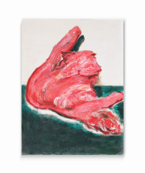 “I enjoy observing the gestures of cats and people that I am intimate with. I use observational drawing or camera to capture such gestures, and then extract the elements I need from them, deconstruct and refine them into semi-abstract symbols and reconstruct them in my oil paintings. I will choose conflicting colors to try to create spaces and scenes that are different from the plain reality. My painting is not a tool to convey concepts. The ultimate goal of painting is the pure image factor, conflict and balance, and the sense of touch brought by brush strokes.”