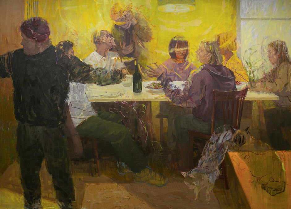 Born in China in 1997, Yongqi Tang attended the University of Washington and received a B.A. in painting and drawing in 2019 and an M.F.A in 2022. She is the recipient of the Boyer and Elizabeth Bole Gonzales Scholarship for Excellence and the Puget Sound Group of Northwest Artists Scholarship Award. "Having studied and worked between China and America, my works have been influenced by the drastically different cultural and ideological contexts of the two countries. Interested in how the interaction with the environing world would affect our existence, I question and deconstruct my roles in both private and public space by investigating the social construction of identities through the act of painting and drawing. My works examine the fluidity of our self-images and relate to the broader human experience of the ambiguousness of identity such as gender, sexuality, and nationality. The objective of my works is to reinterpret the categories into which we are born to re-articulate the discourse around them. My studio practices involve a variety of materials such as oil, watercolor, acrylic, and charcoal. Using the dining experience as an entry point, my current works examine the ambivalence to be in the liminal state between the alienation from my country of origin and the displacement at the current settlement. The works inspect how Chinese immigrants see themselves through the concepts others have of them and the groups they belong to, and perform identities under the impact of the surrounding conditions. Identity therefore becomes a duplicated phenomenon – people are both themselves and a project they make of themselves."